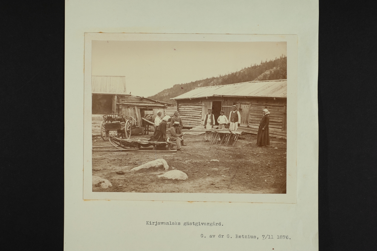 Ark med monterat foto och text: "Kirjavanlaks gästgivargård. G. av dr G. Retzius, 7/11 1879."