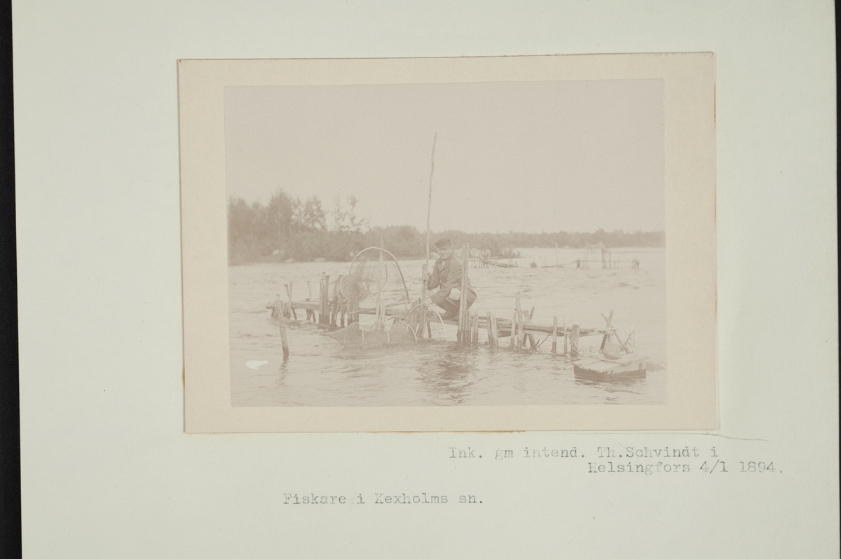 Ark med monterat foto och text: "Fiskare i Kexholms sn."