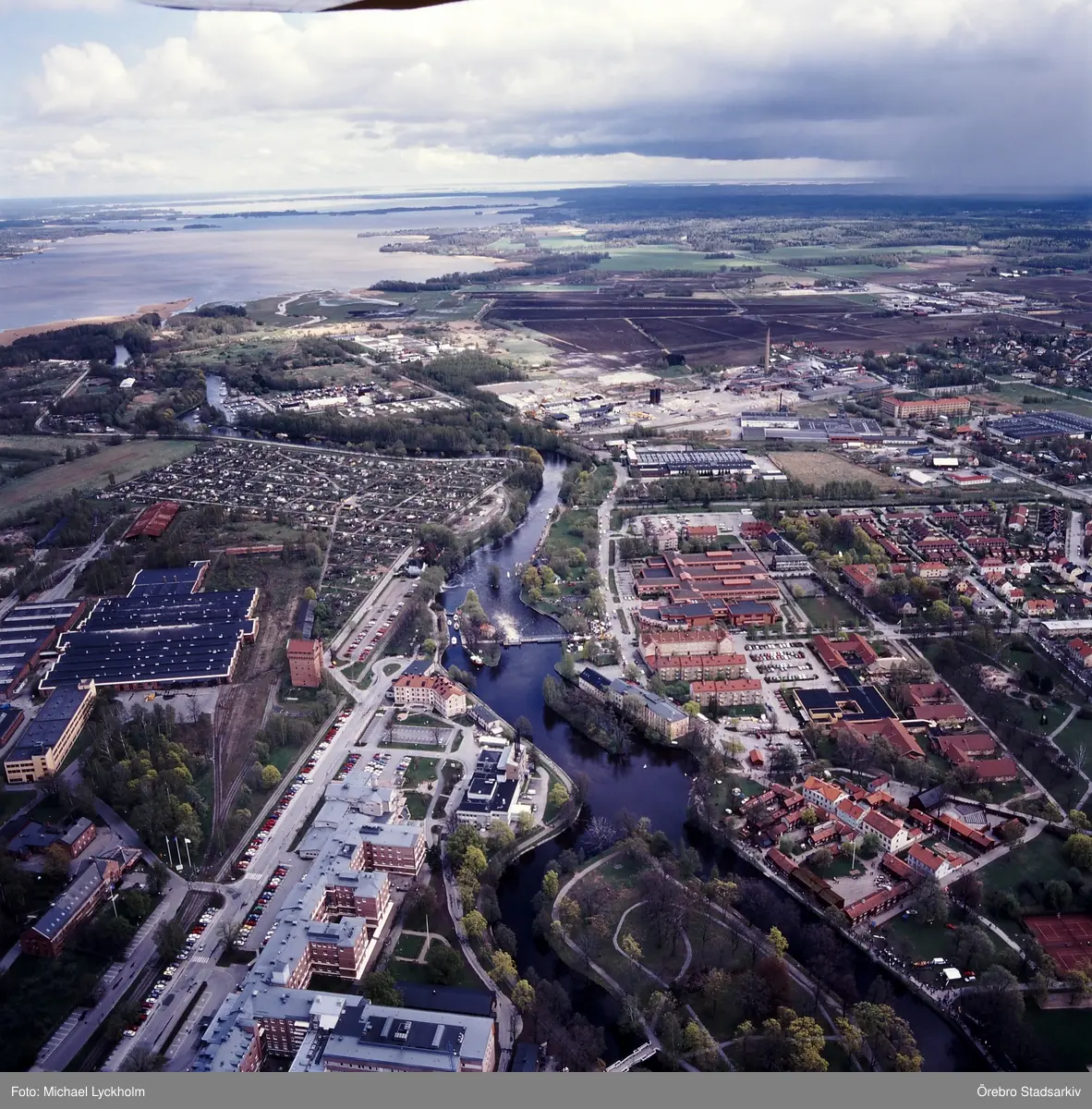 Flygfoto över Örebro mot öster, 1995