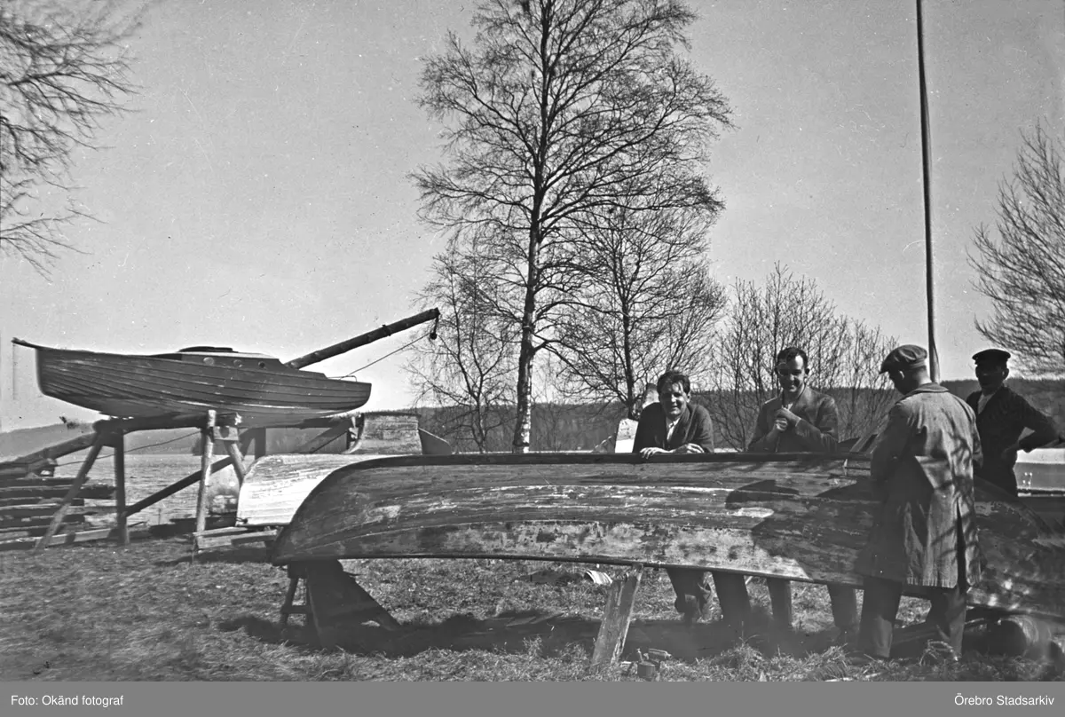 Arbete med båtar i båthamnen i Tisaren, 1920-tal