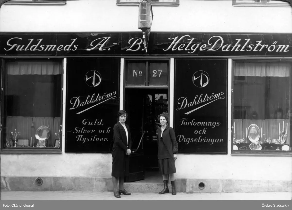 Två kvinnor framför guldsmedsbutik, 1920-tal