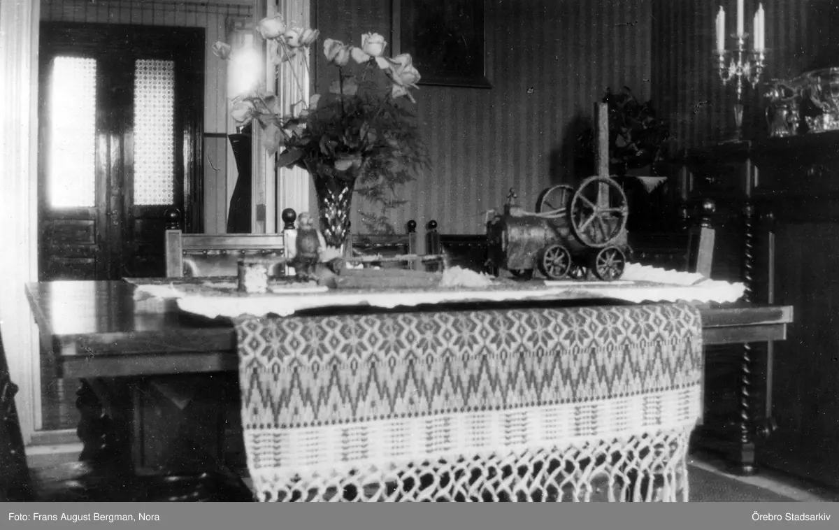 Modell av ånglok på bord på Bomanshyttan, Nora, 1930