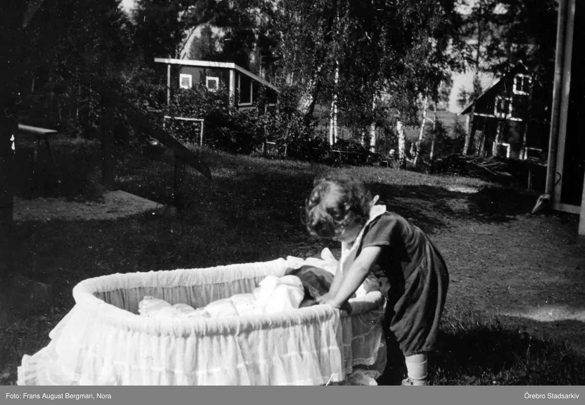 Barn vaggar småsyskon på Bomanshyttan i Nora, 1930-tal