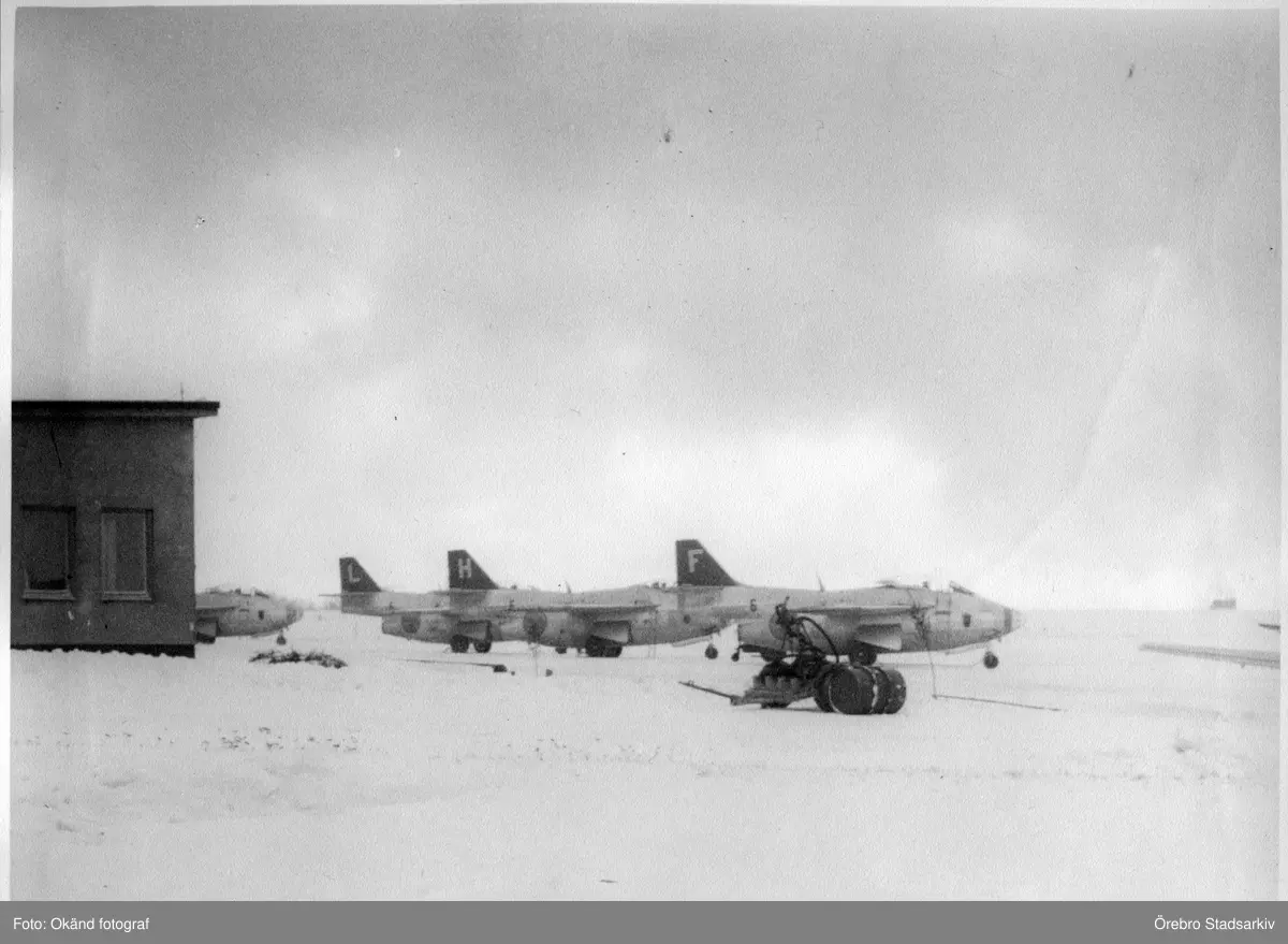 Saab 29 Tunnan avgår för provflygning på Karlsborgs luftvärnsregemente, 1955 ca