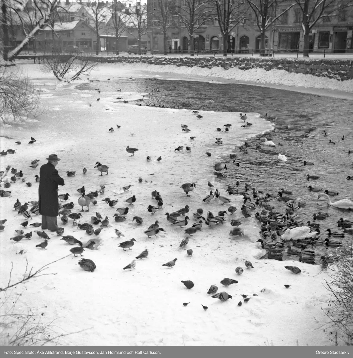Fågelmatning vid Slottsparken. 1945-12