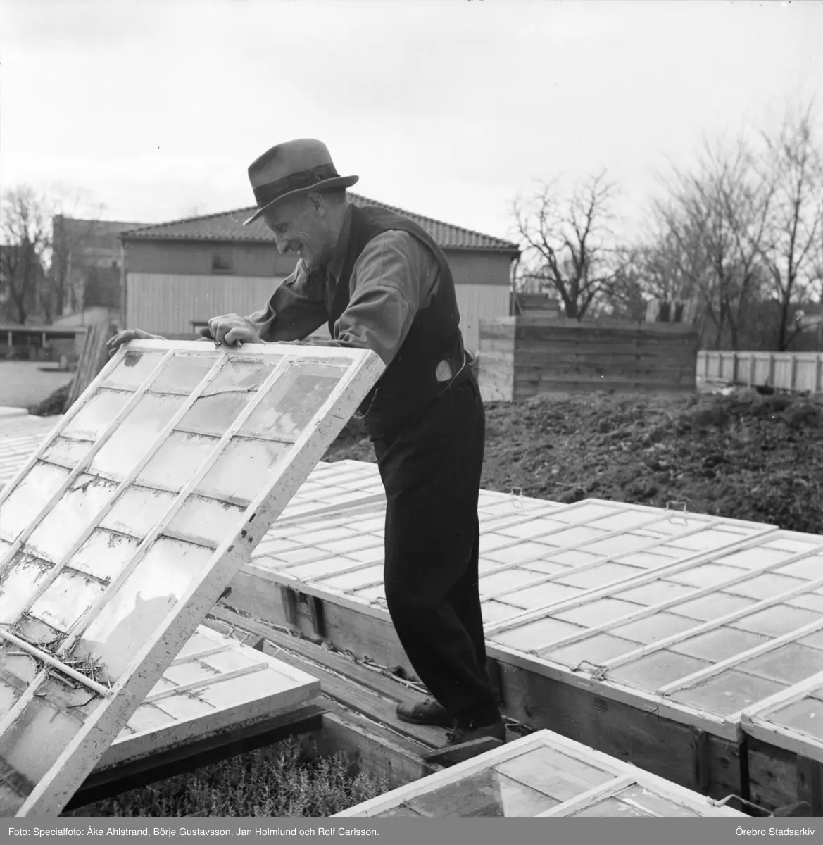 Trädgårdsmästaren visar drivbänk i Örebro Stadsträdgård, 1946-04-29