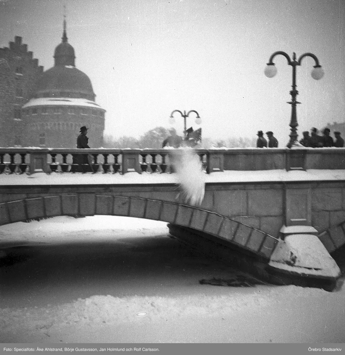 Snöskottning på Storbron i Örebro, 1945-12