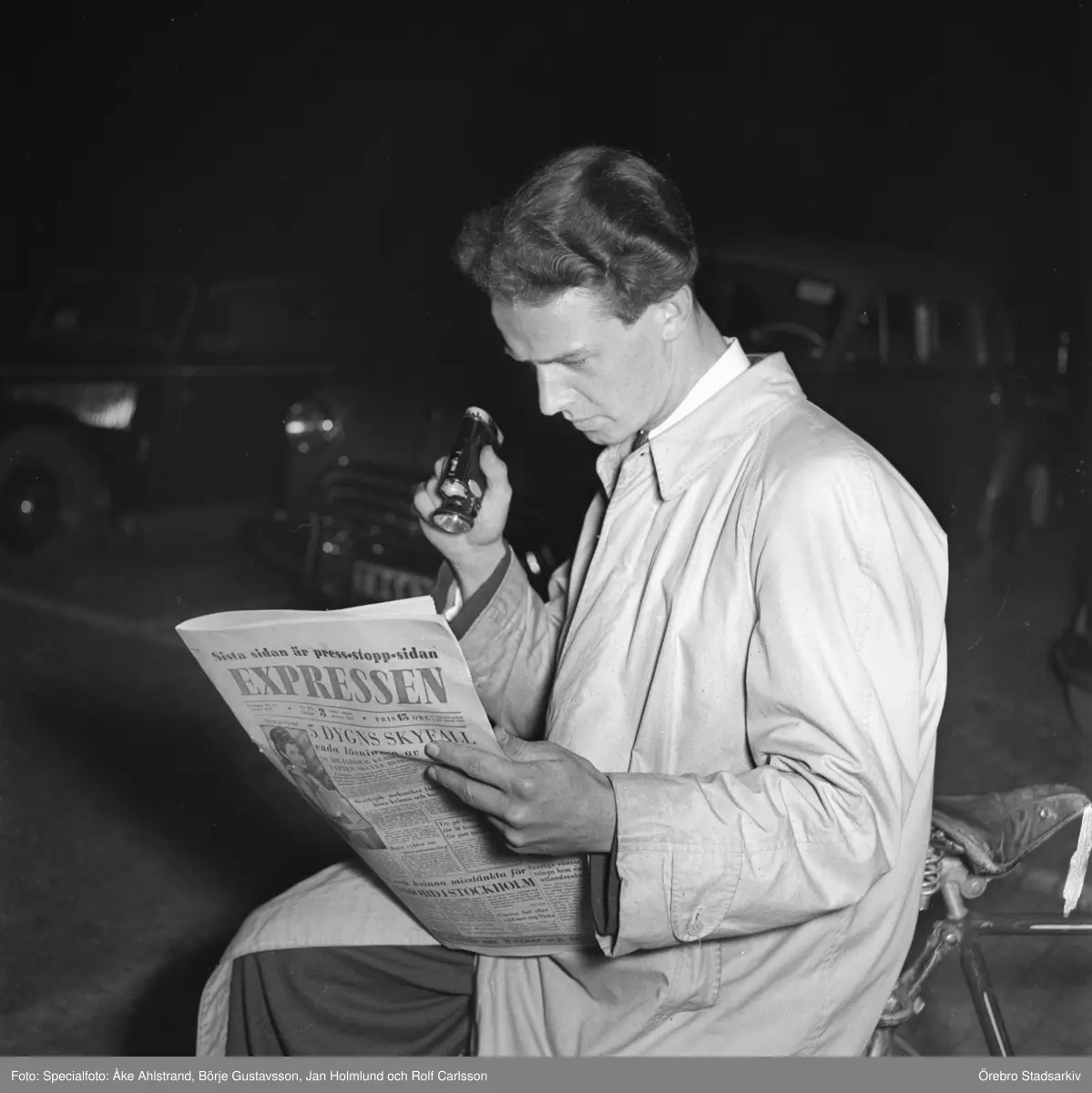 Vid el-ransonering används ficklampa i Örebro, 1947-10-13