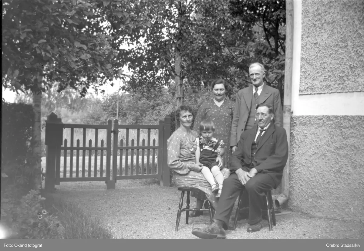 Gruppbild på grusgång i Rynninge, 1940-tal