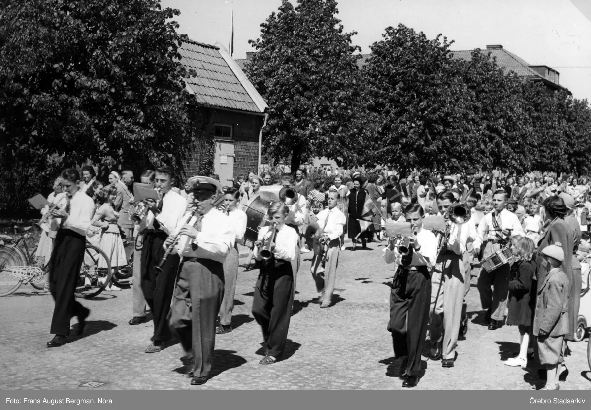 Parad med skolorkester i Nora, 1945 ca