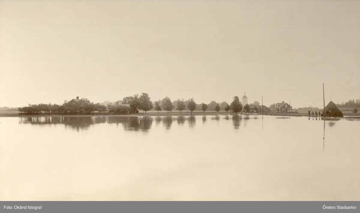 Grupp försöker rädda höet vid lokal översvämning i Stora Mellösa, 1910-08-03