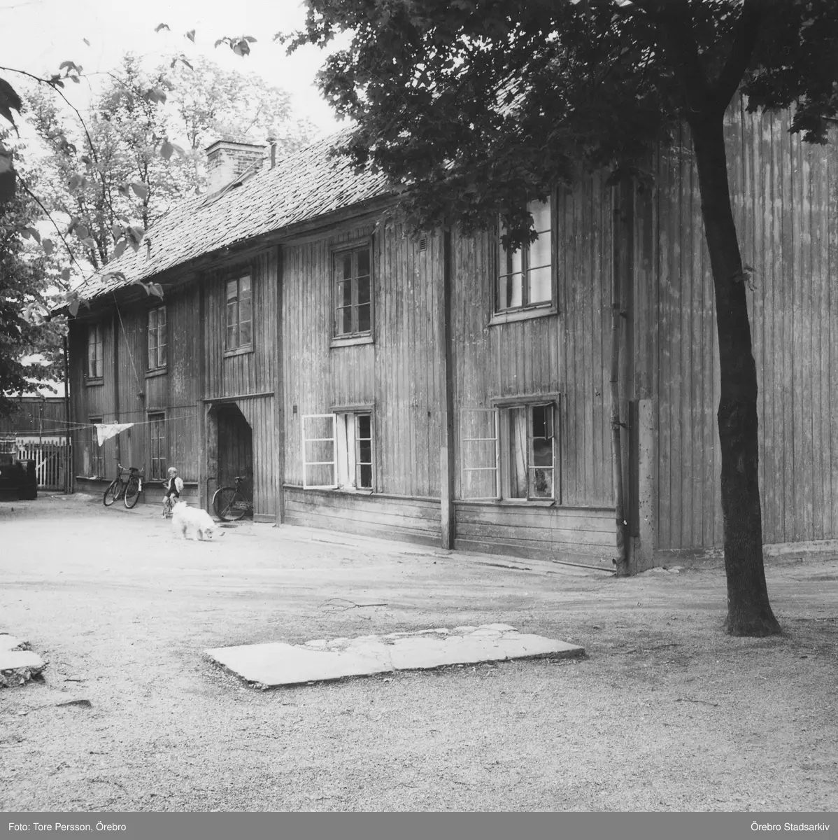 Barn och hund på gården Köpmangatan 32,34, 1953