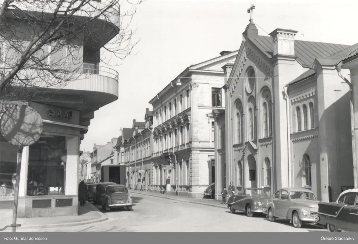 Parkering längst Köpmangatan vid Betelkyrkan, 1959