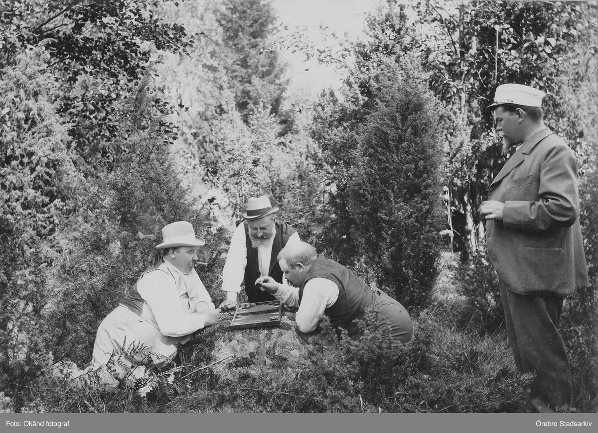 Män spelar Backgammon i skogen i Götarsvik, 1897