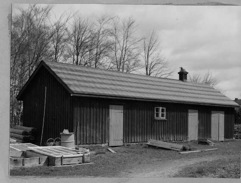 Redskapsbod. Byggnad 4. Redskapsbodens långfasad mot söder och gavel mot väster Vänersborg