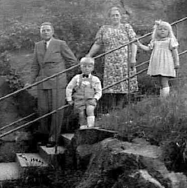 FAR OCH MOR MED TVÅ BARN I EN TRAPPA