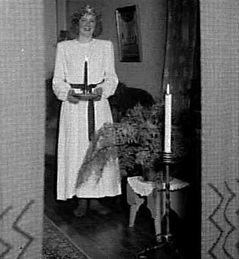 EN KVINNA I VIT KLÄNNING MED LJUSSTAKE I HANDEN
