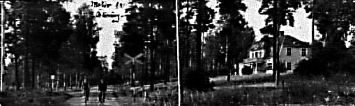 BOSTADSHUS SAMT TVÅ PERSONER SOM CYKLAR PÅ EN LANDSVÄG