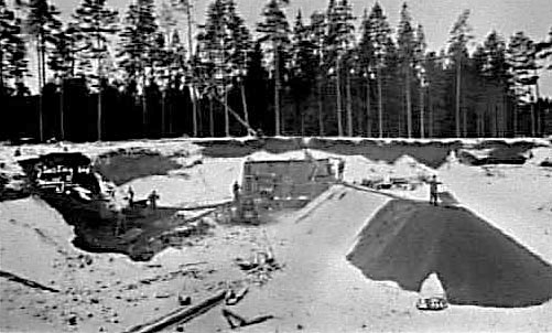 ETT STÖRRE GRUSTAG MED ETT SORTERINGSVERK OCH NÅGRA ARBETARE.