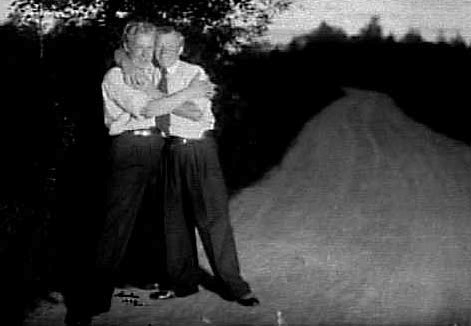 SVEN OCH MARTIN JOHANSSON FRÅN TIDAN STÅR PÅ EN VÄG I KAMERABLIXTENS SKEN.