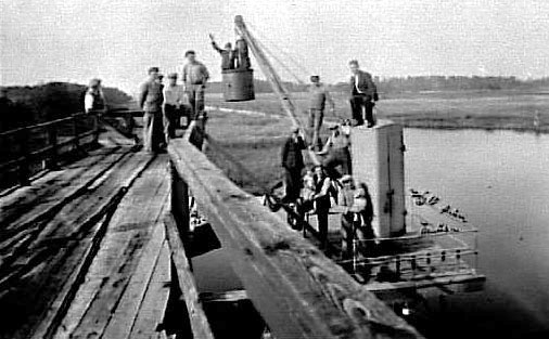 NÅGRA MÄN PÅ BRYGGAN VID ÅRNÄS GLASBRUK.