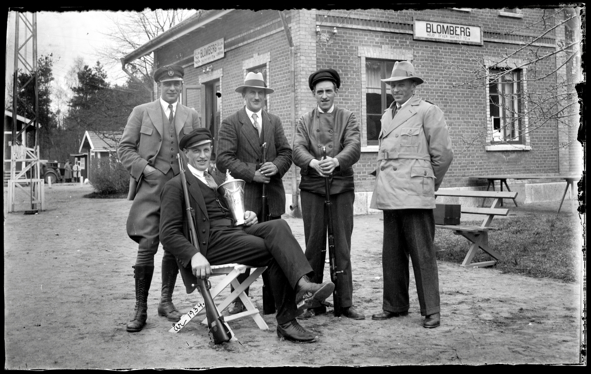 Män samlade vid Blombergs station