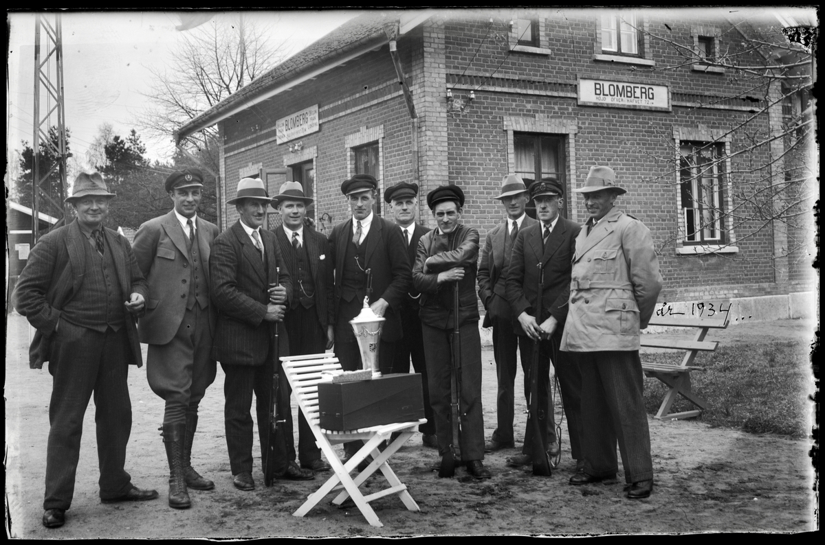 Män samlade vid Blombergs station