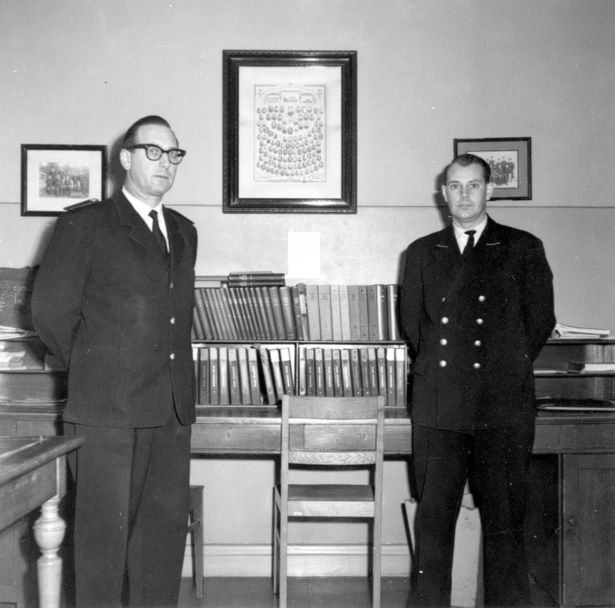 I vaktrummet. Tulluppsyningsmännen H.E. Scherlund och S.O. Kjöllerström.