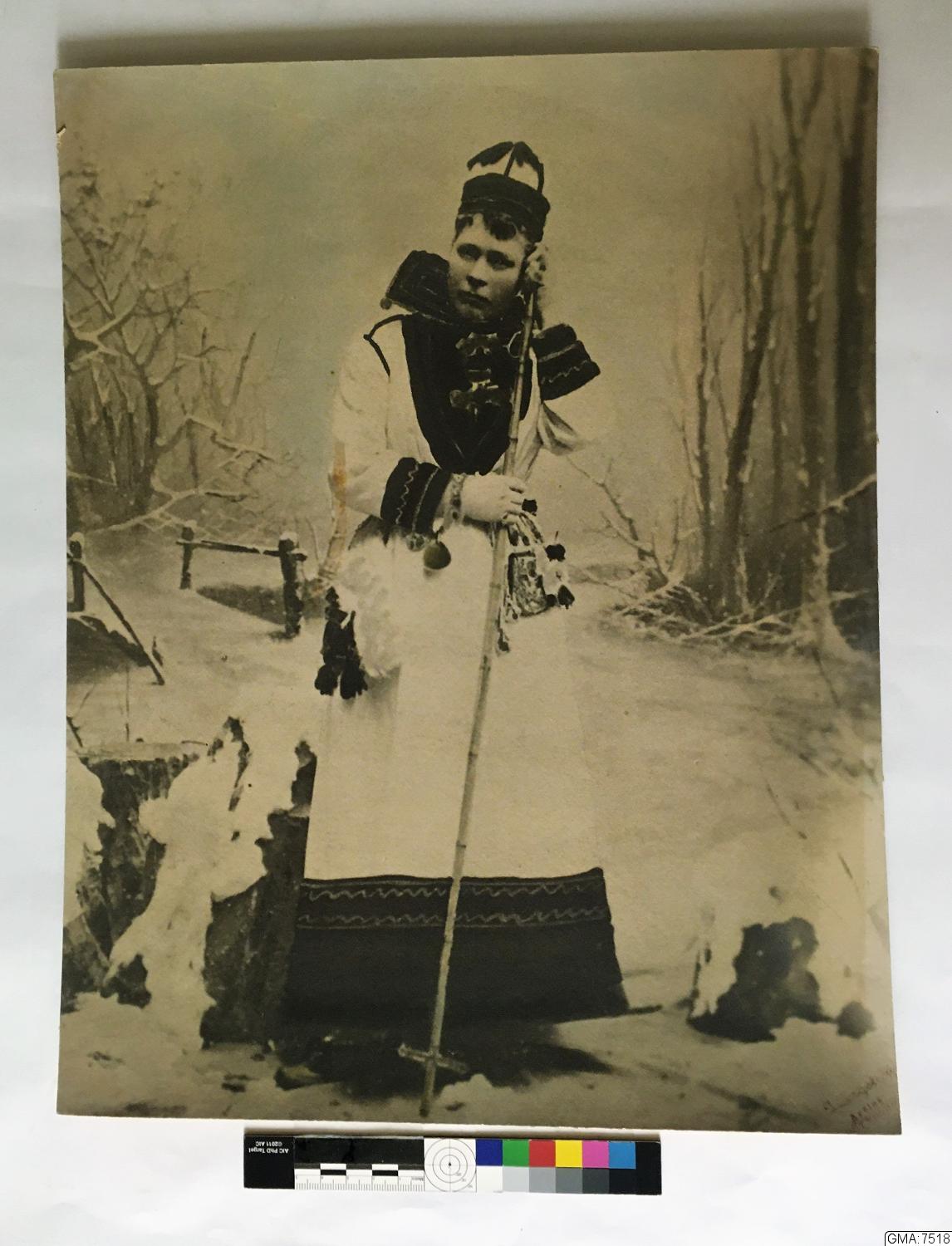 fotografi: Körledare Aug. Norrbys fru, operasångerskan Jenny Widegren. Rollbild, omkring 1900. (Format ca 40 x 32 cm.)