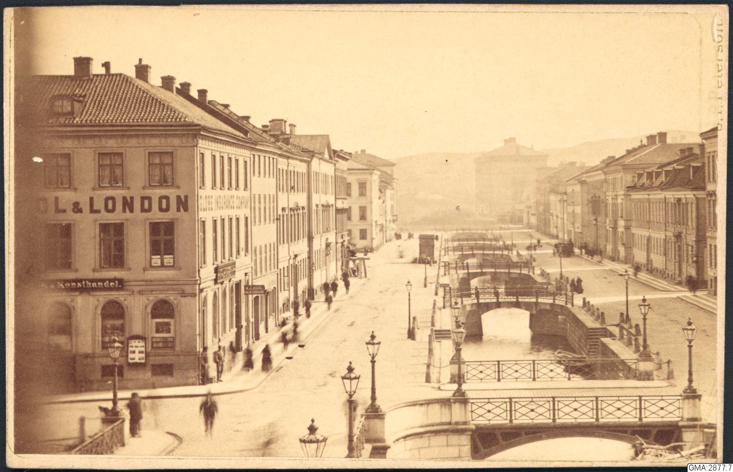 Sträckningsbild med Östra Hamngatan och Östra Hamnkanalen. I fonden Allmänna och Sahlgrenska sjukhuset.