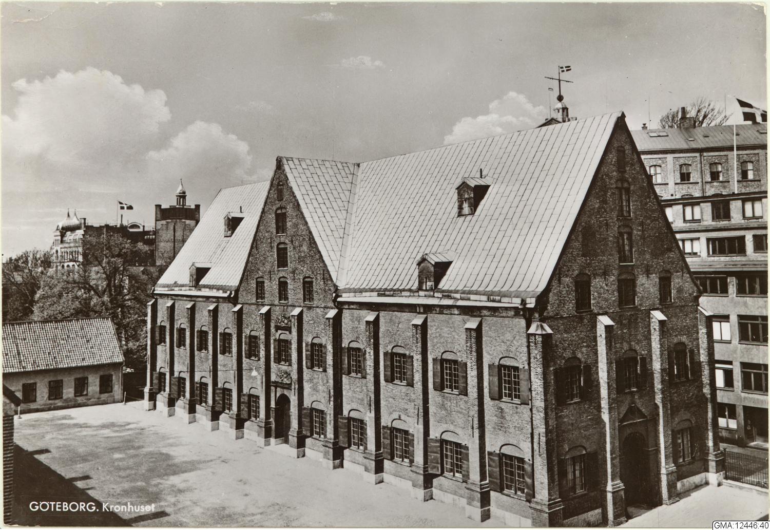 Vy över Kronhuset och Kronhusgården. Blick från Nedra Kvarnbergsgatan.