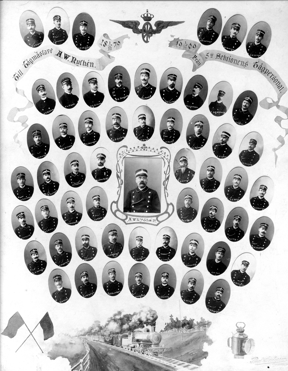 5:te sektionens tågpersonal 1909. Gåva till tågmästare A W Ruthén.