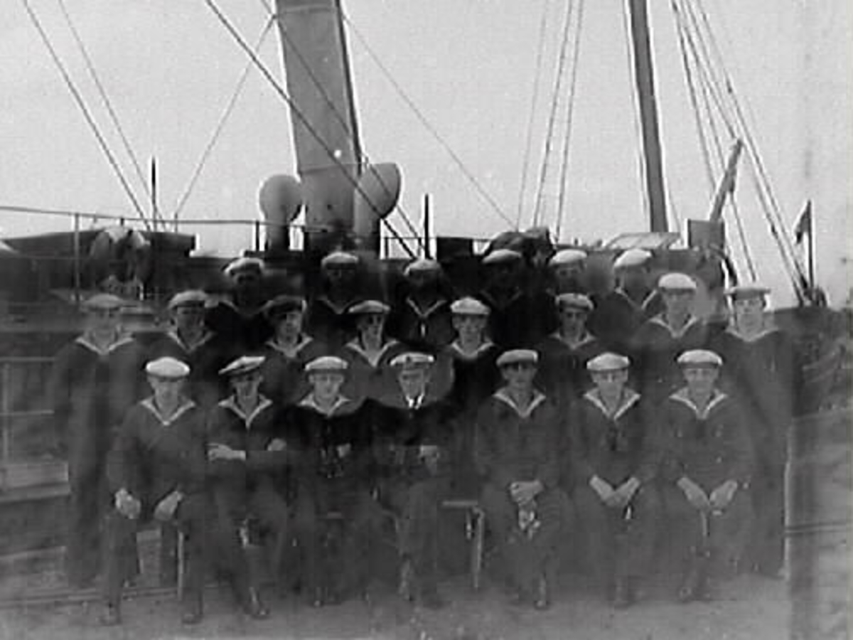 Besättningen på sjömätningsfartyget "Svalan". Varbergs hamn, 1920-tal.