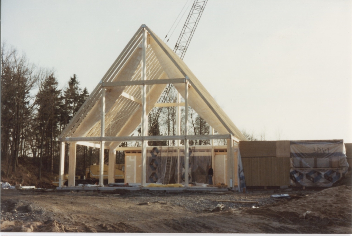 Takstolar på plats, Apelgårdens kyrka 1981 eller 1982.