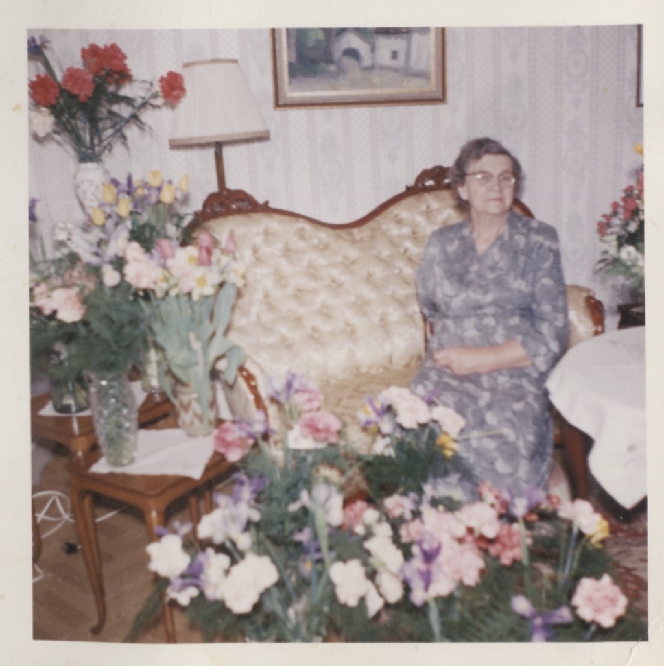 70-årsuppvaktning i hemmet för Selma Johansson, född 1891 Backen, "Smens", död 1978 Heljered Sörgård 2:3 "Ordförans".