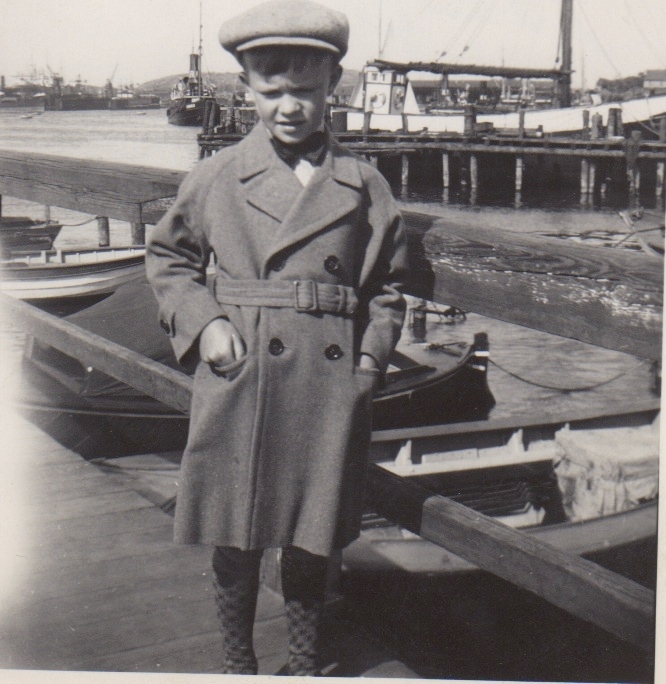 Bengt Johansson (1930-2016), Labacka 1:2 "Lund", är på besök i Göteborgs hamn cirka 1935. Son till Axel och Lisa Johansson.