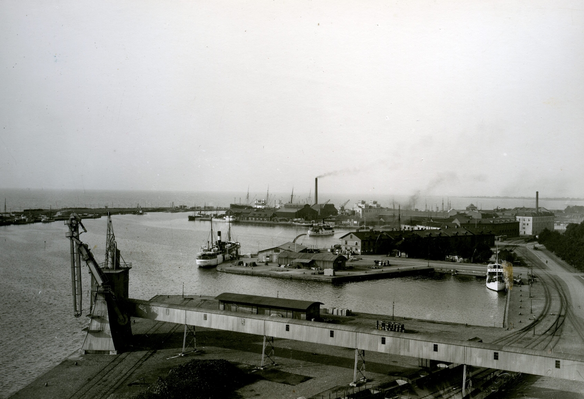 Hamnen 1926. Bilden tagen från Ångkvarnen. En av de bästa bilderna på elevatorn som finns.
