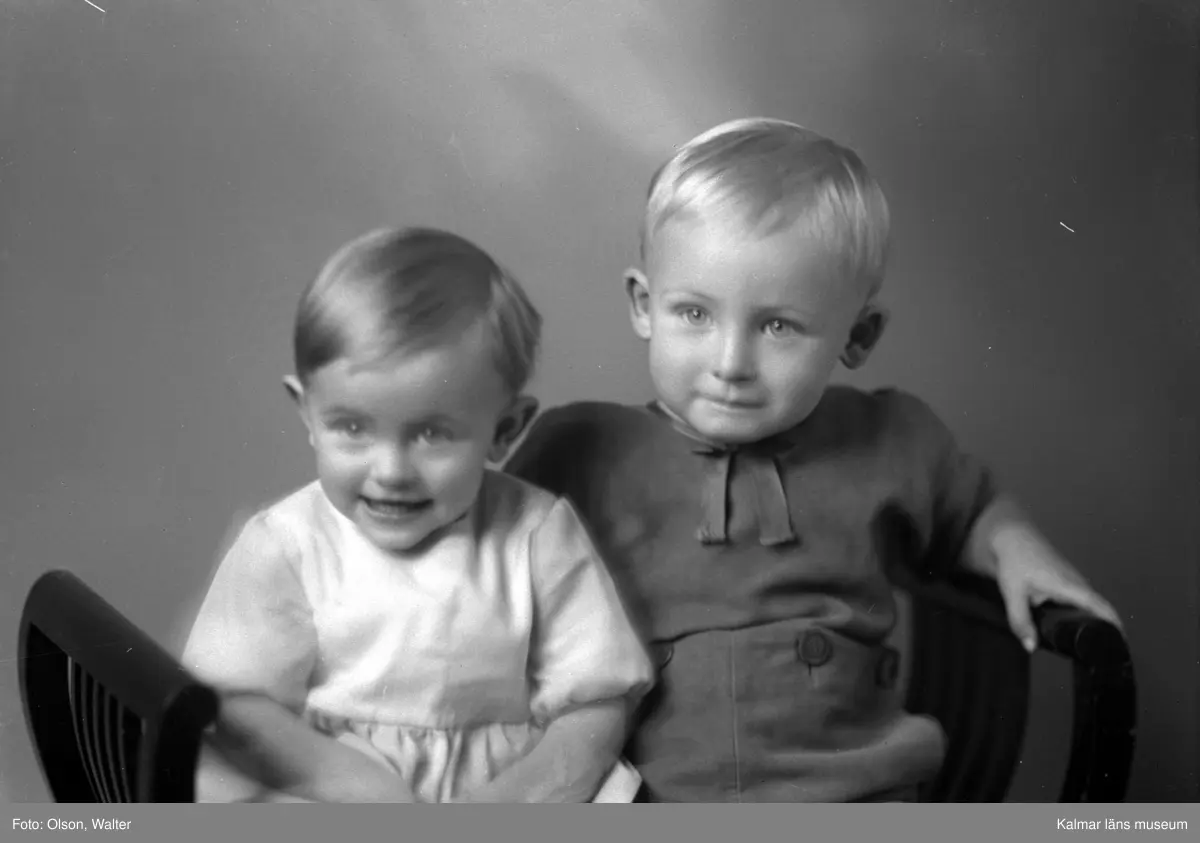 Ateljébild på en pojke och flicka. Beställare till bilden: Erik Gustavsson ifrån Tvärskog.