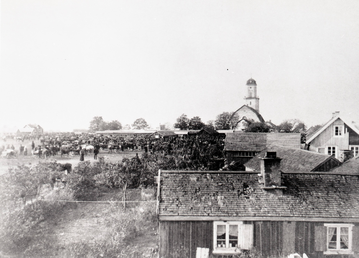 Algutsrums marknad. I huset till höger bodde Karl (Charles) Vidergren som omkom vid Titanic´s undergång.