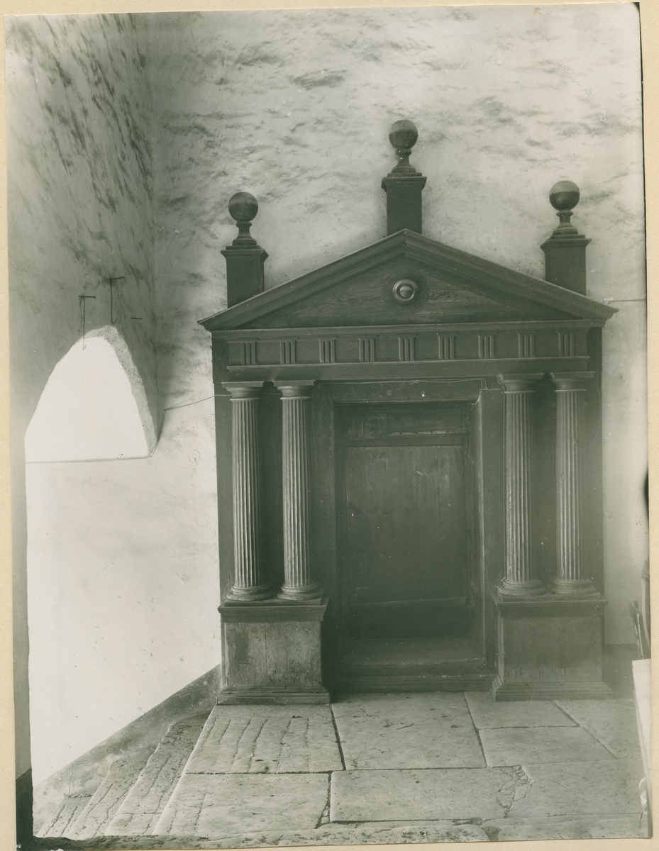 Portal av trä vid ingången till Drottningsalen från nordöstra vindelstenen.