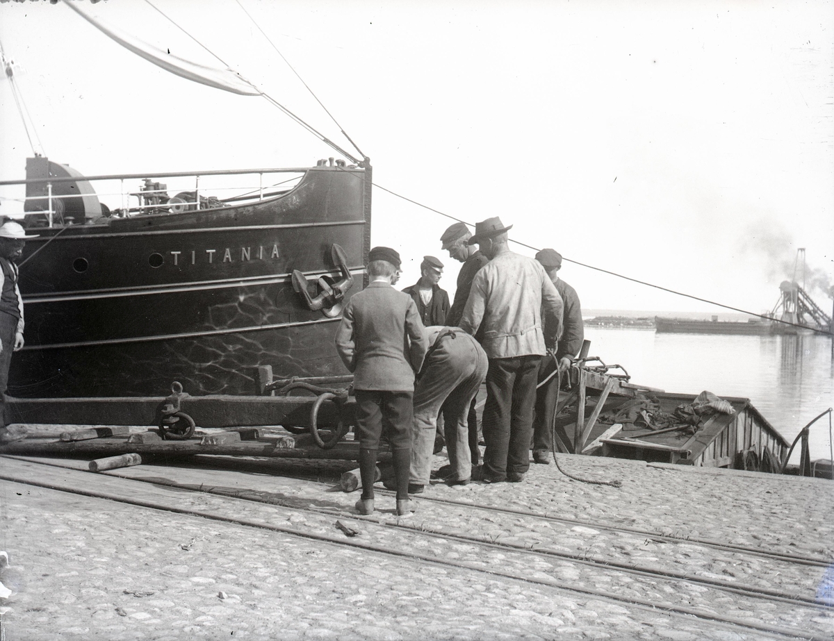 Arbetare vid fartyget Titanias för.