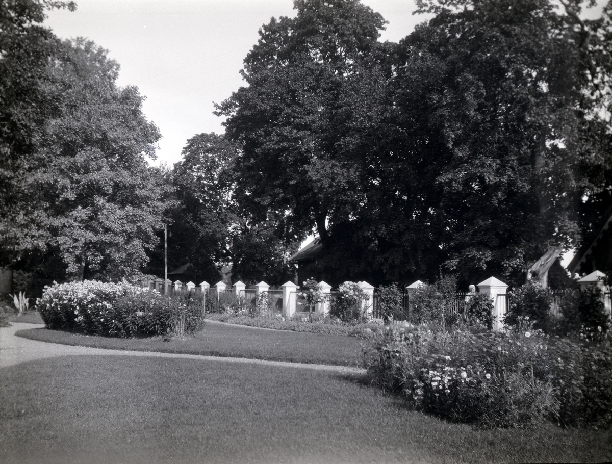 Staket och blommor på Tuna gård.