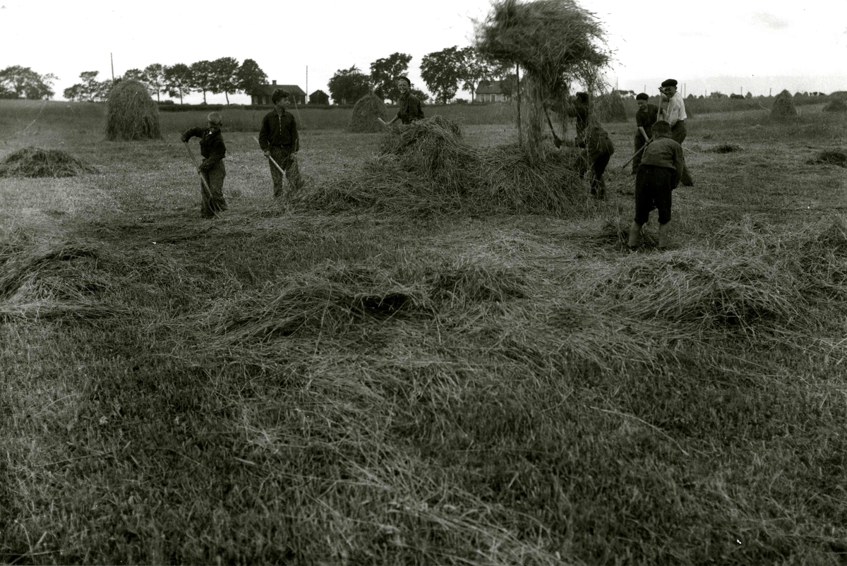 Ett jordbruk hörde till anläggningen och här ses några av pojkarna under höbärgningen.