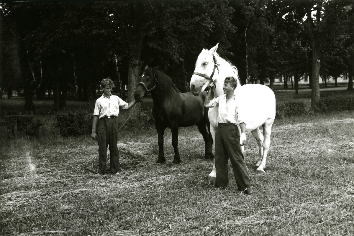 Ett jordbruk hörde till anläggningen och här ses två av pojkarna och två av gårdens hästar.