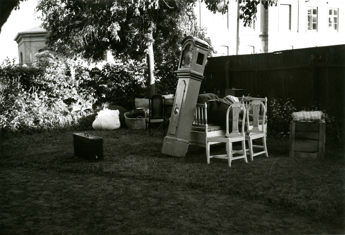 Ett utburet möblemang utanför Norrgård. Oklart varför möblerna står på gräset.