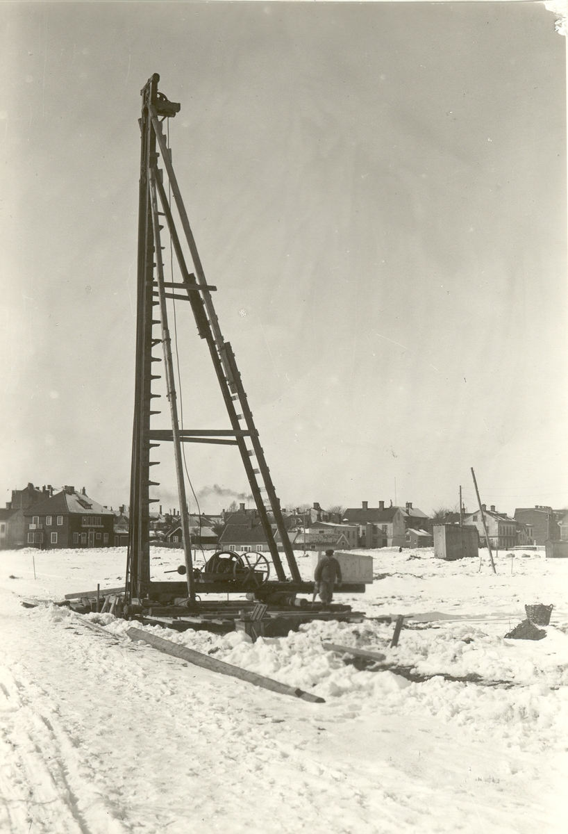 Vid uppmuddring av Fredriksskanskanalen och reparation av Strandskoningen längs Södra Kanalgatan i Kalmar 1932-1934.