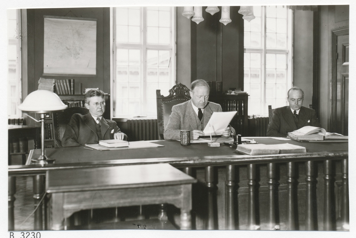 Rådman Sune Hellroth och borgmästare Yngve Malmqvist. Mitten av 1940-talet, Kalmar.
