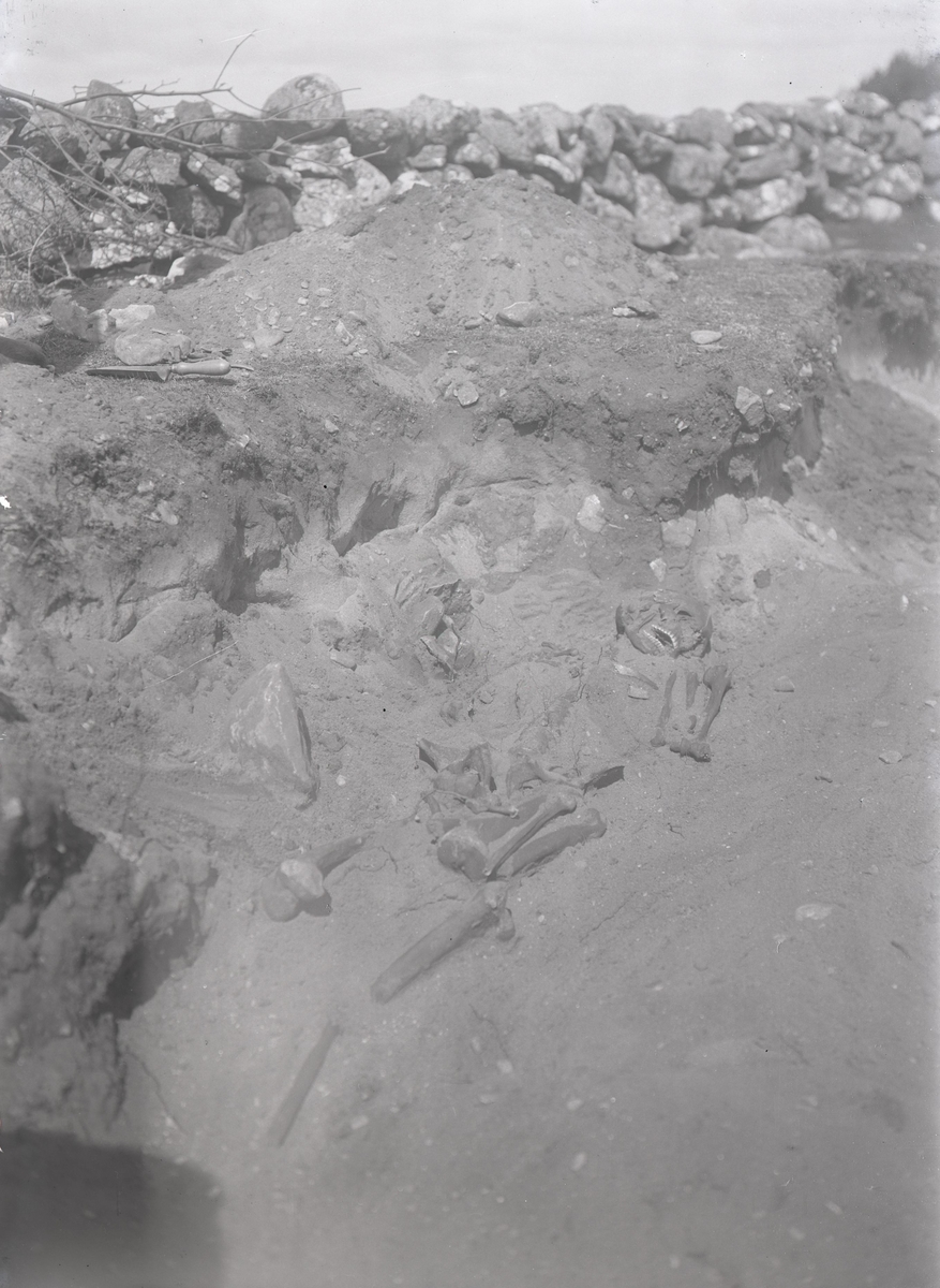 Grav belägen tätt vid vänstra kanten av landsvägen mellan Folkeslunda och Långlöts kyrka, 90 meter norr om bron. Undersökt maj 1927