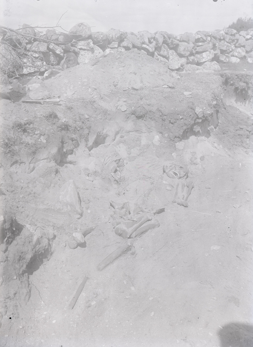 Grav belägen tätt vid vänstra kanten av landsvägen mellan Folkeslunda och Långlöts kyrka, 90 meter norr om bron. Undersökt maj 1927