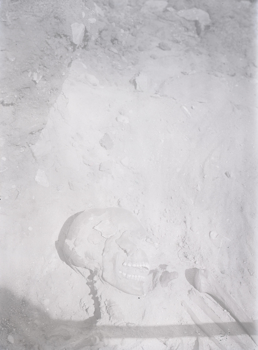 Grav belägen tätt vid vänstra kanten av landsvägen mellan Folkeslunda och Långlöts kyrka, 90 meter norr om bron. Undersökt maj 1927